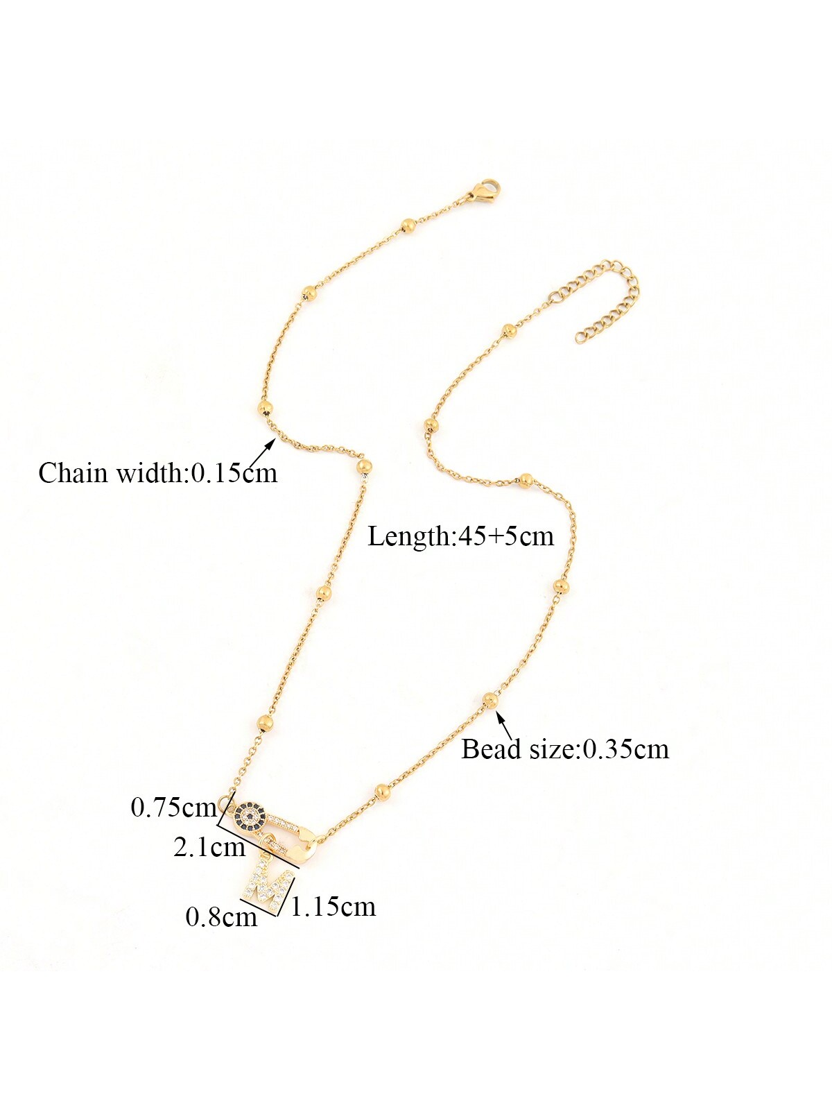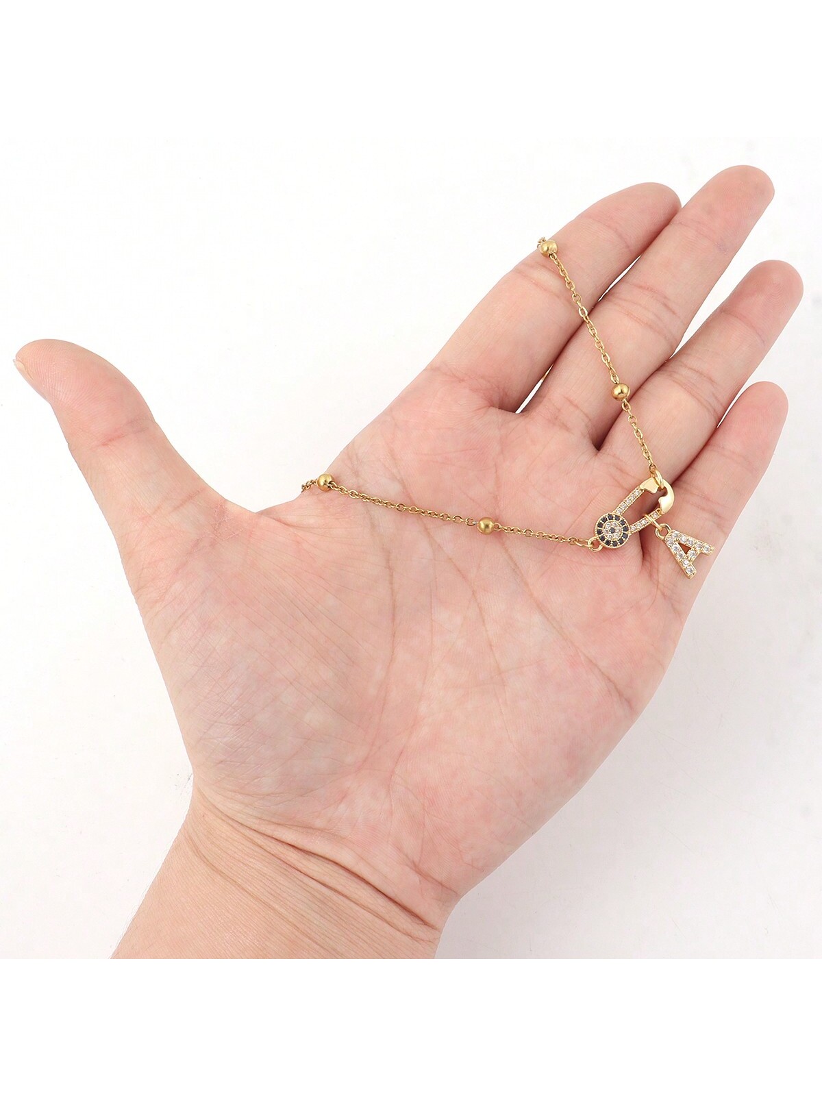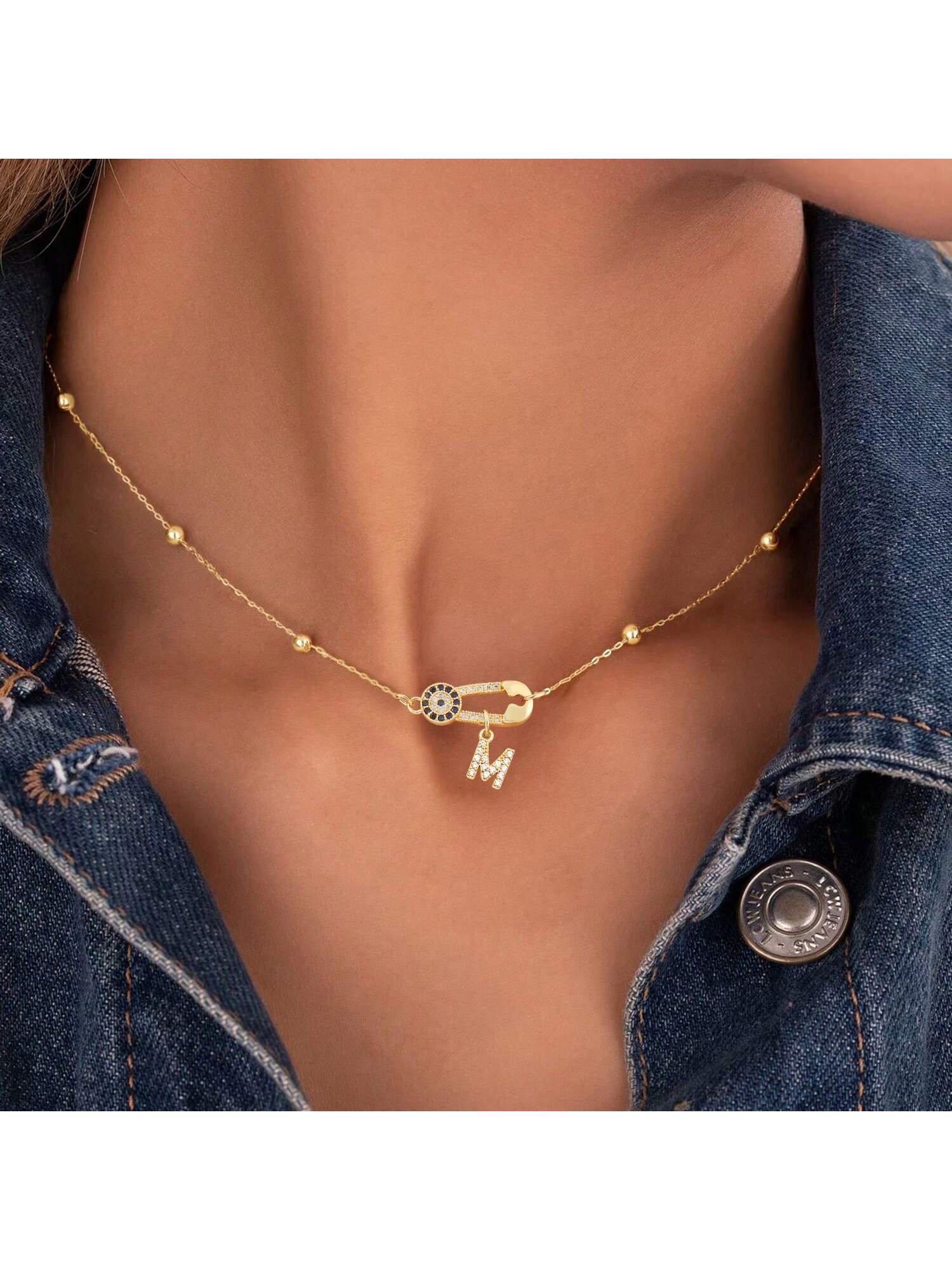 قلادة زركون مبلط بحرف أولي شكل عين، سلسلة خرز من الفولاذ المقاوم للصدأ