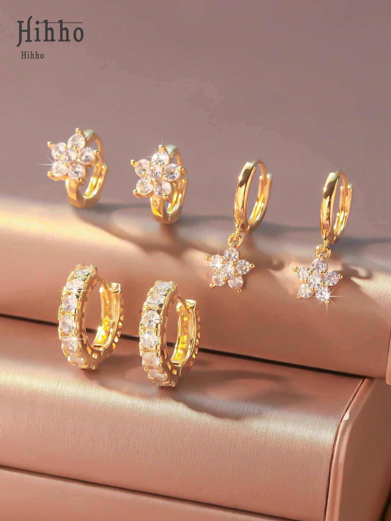 6 قطع من مجموعة الأقراط الفاخرة المنفصلة المرصعة بحجر الزركونيا الكامل